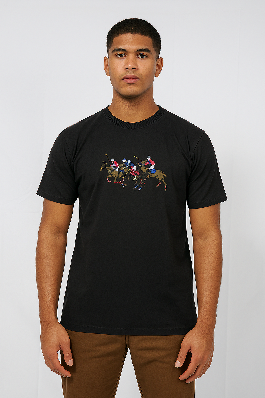 Men’s Black Beige Polo Player Graphic T-Shirt –...