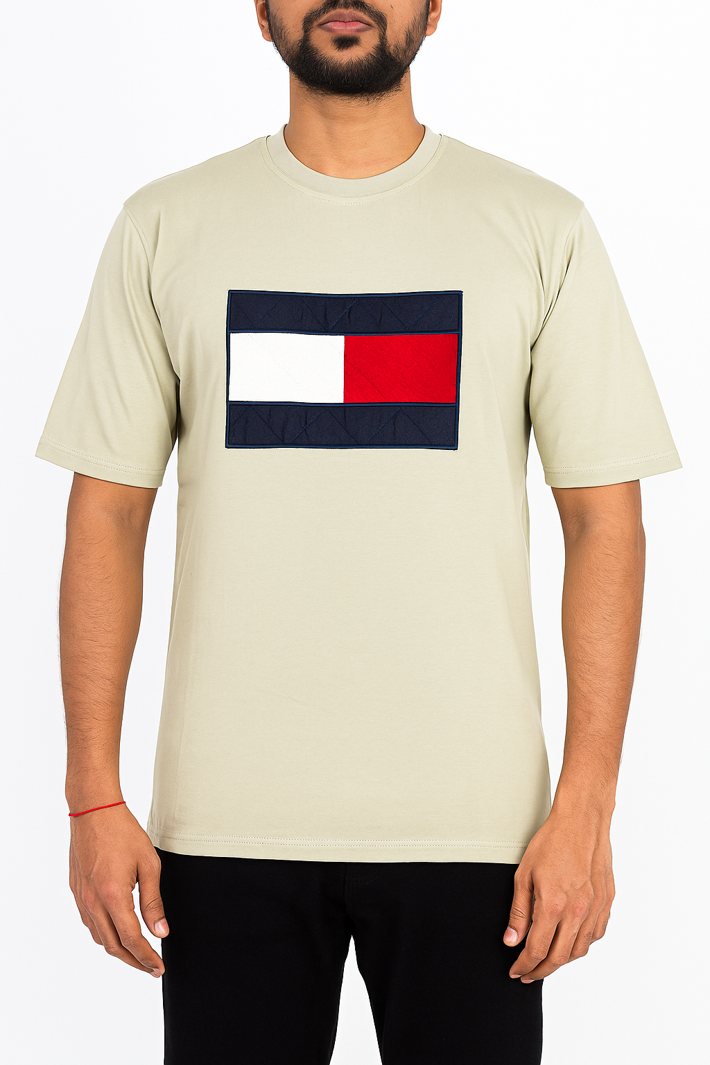 Beige Flag Patch T-Shirt for Men – Classic Cotto...