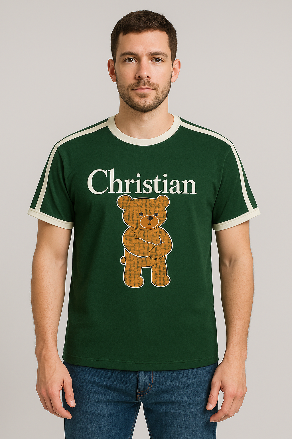 Christian Bear Graphic Green Men's T-Shirt – Cas...